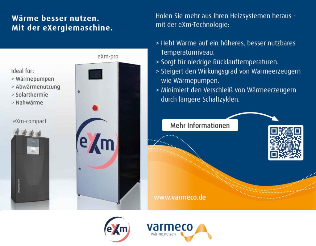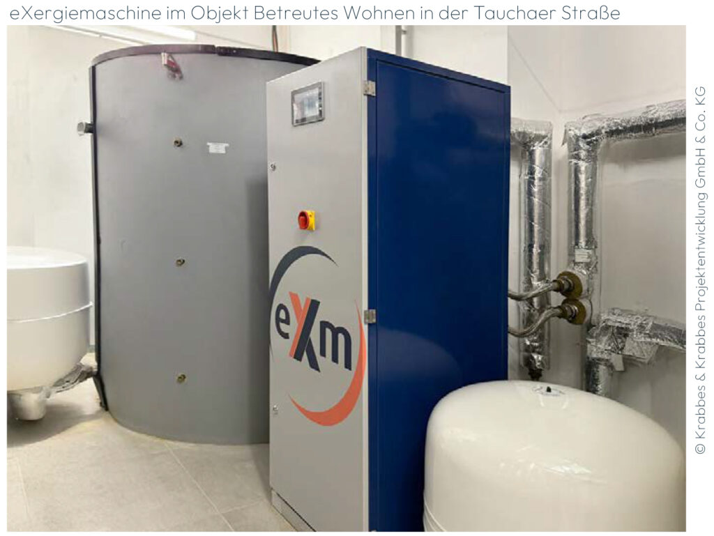 Besonders bei großen Gebäuden zeigen sich die Vorteile, zum Beispiel bei Mehrfamilienhäusern oder den von der Krabbes & Krabbes Projektentwicklung umgesetzten Wohn- und Pflegeeinrichtungen (s. Bild). Luftwärmepumpen schaffen im Winter selten die geforderten 60 Grad Warmwassertemperatur, die eXm übernimmt das mühelos und spart dabei mehrere Tausend Euro Energiekosten pro Jahr. Auch im Bereich der Fernwärme hat sich das System bewährt. Die eXm kann den Rücklauf zum Fernwärmenetz absenken. Fernwärmekunden können dadurch die Nutzungsbedingungen einhalten, Fernwärmeanbieter mehr Nutzer an das bestehende Netz anschließen. In Jena setzt die Universitätsklinik bereits erfolgreich auf diese Technologie, weitere Projekte sind in Planung.